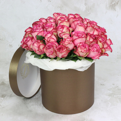 51 розово-малиновая роза в шляпной коробке| 16 100 Р | без скидки |