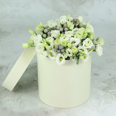 11 белых лизиантусов в шляпной коробке| 9 800 Р | без скидки |