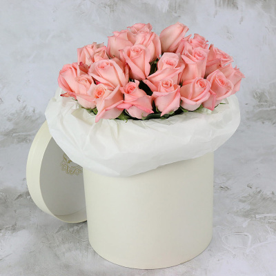 25 нежно-розовых роз в шляпной коробке| 8 000 Р | без скидки |
