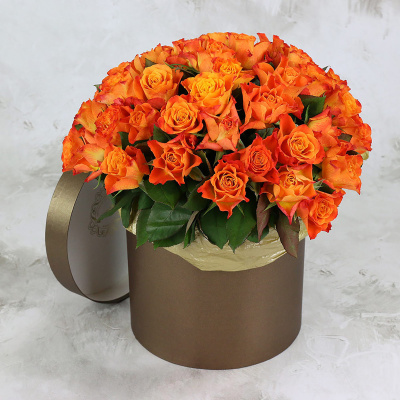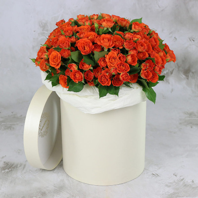 51 оранжевая кустовая роза в шляпной коробке| 16 900 Р | без скидки |