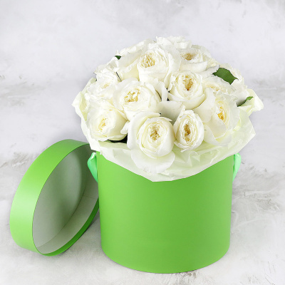 25 белых пионовидных роз Александра в шляпной коробке| 17 900 Р | без скидки |