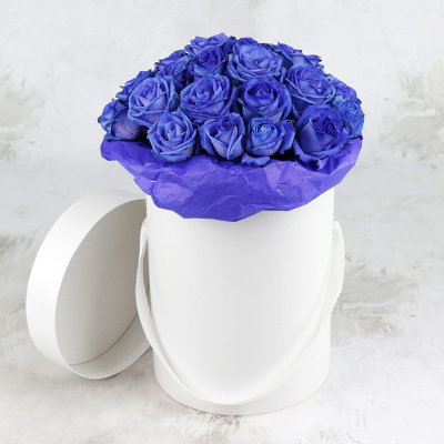15 синих крашеных роз в шляпной коробке| 8 300 Р | без скидки |