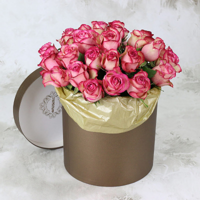 25 розово-малиновых роз в шляпной коробке| 8 000 Р | без скидки |