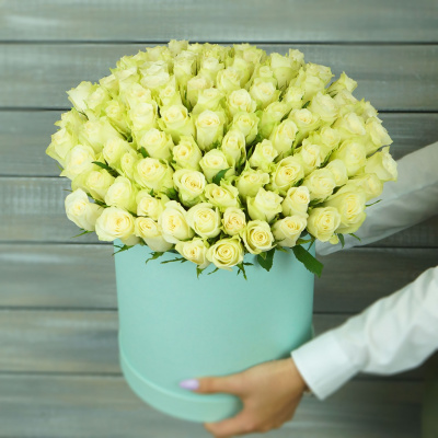Букет из 101 белой розы в шляпной коробке, Кения| 12 700 Р | без скидки |