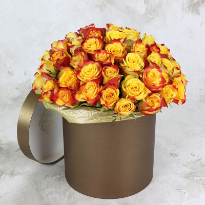 51 желто-оранжевая роза в шляпной коробке| 17 700 Р | без скидки |
