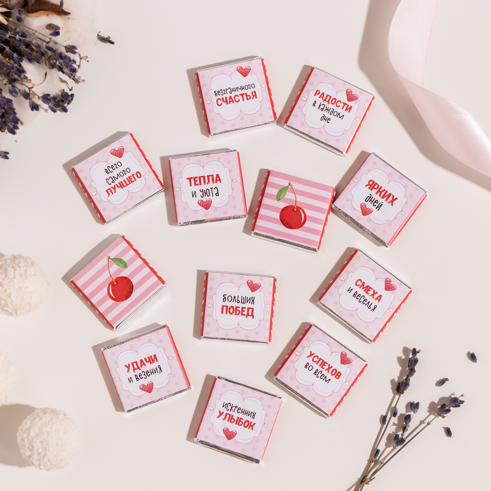 Набор 12 шоколадок Сладкого дня рождения (торт на розовом фоне)