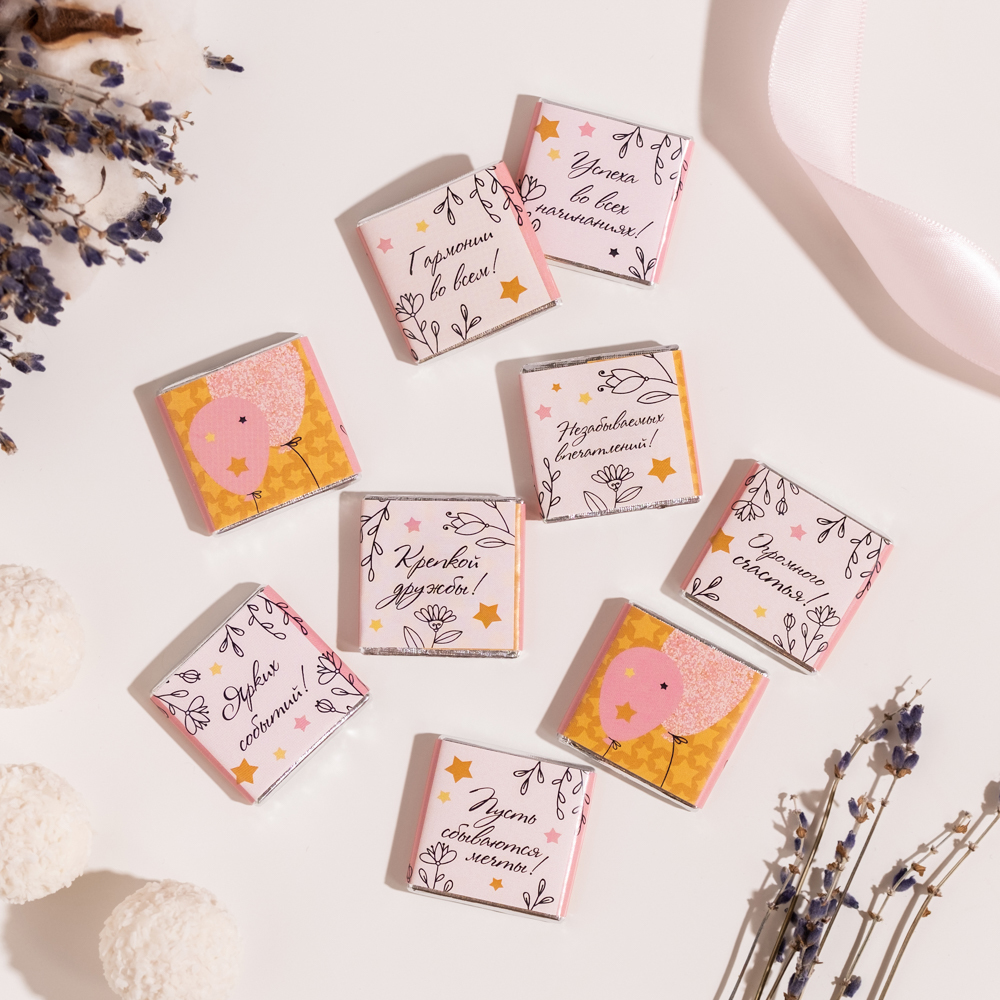 Набор 9 шоколадок С днем рождения (розовый с оранжевым)