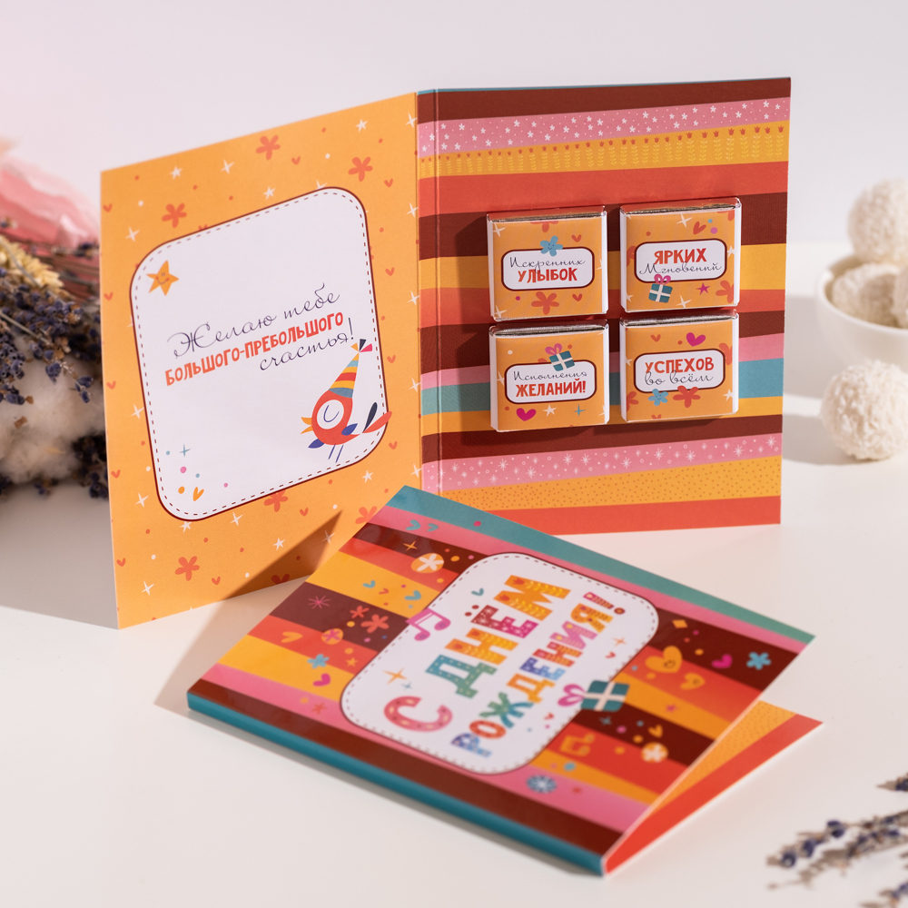 Открытка 4 шоколадки С днем рождения (яркие полосы)