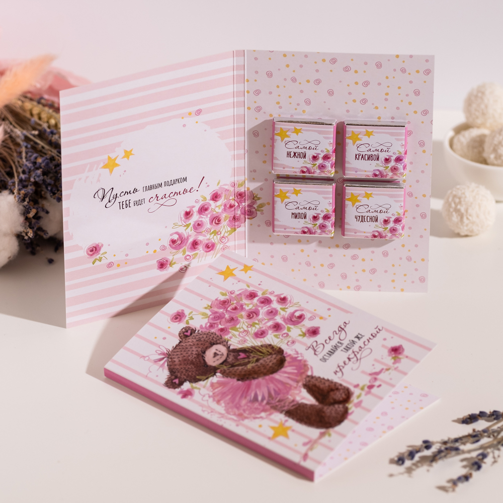 Открытка 4 шоколадки Всегда оставайся такой же прекрасной