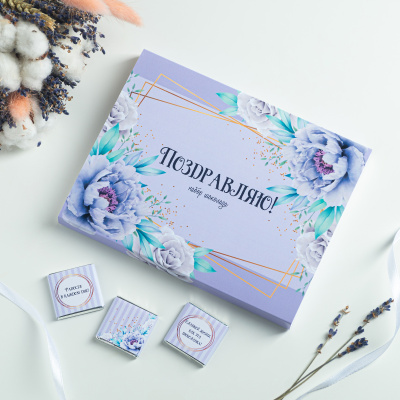 Набор 12 шоколадок Поздравляю сиреневый с цветами| 690 Р | без скидки |
