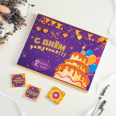 Набор 12 шоколадок С днём рождения (фиолетовый)| 690 Р | без скидки |