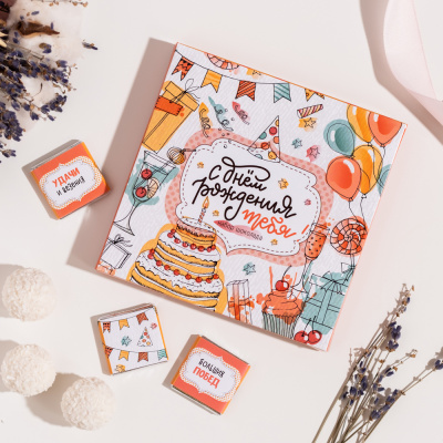 Набор 12 шоколадок Сладкого дня рождения (торт на розовом фоне)| 690 Р | без скидки |
