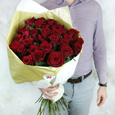 31 роза Ред Наоми в стильной упаковке Россия 60 см. В корзину
