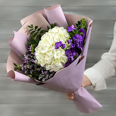 Букет из гортензии, маттиолы и лимониума| 2 700 Р | без скидки |