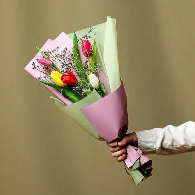 Тюльпан микс,Упаковка в ассортименте,Лимониум краш (шт),Лента (за1м),Плёнка прозрачная (за1м)