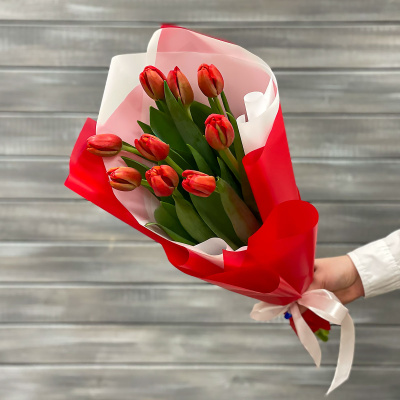 Букет из 9 красных тюльпанов| 3 600 Р | без скидки |