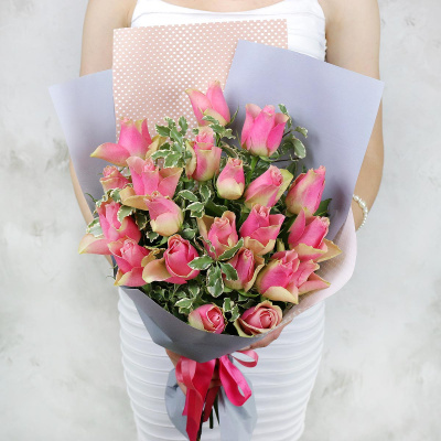 Букет из 21 розово-зеленых роз Кения 40 см.| 4 000 Р | без скидки |