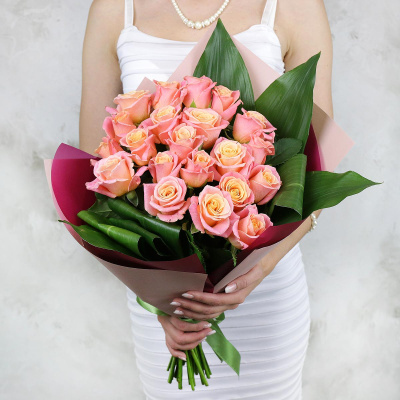 Букет из 21 коралловых роз и аспидистры| 4 800 Р | без скидки |