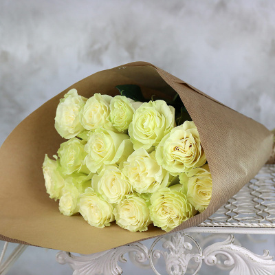 Букет из 15 белых роз 60 см. в крафте| 5 400 Р | без скидки |