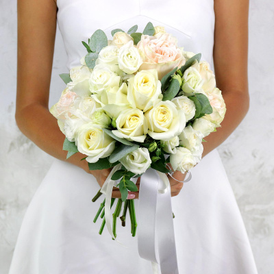 Композиция из белых роз и маттиол (55 см)| 34 400 Р | без скидки |