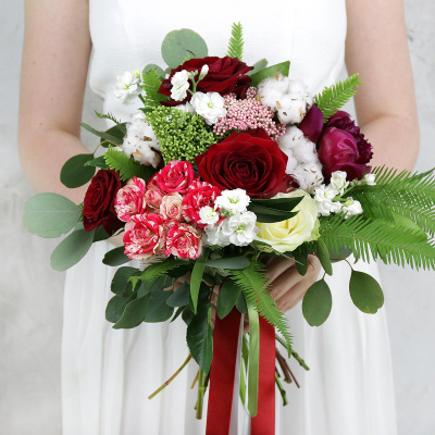 Букет невесты из роз, хлопка и пиона| 6 200 Р | без скидки |