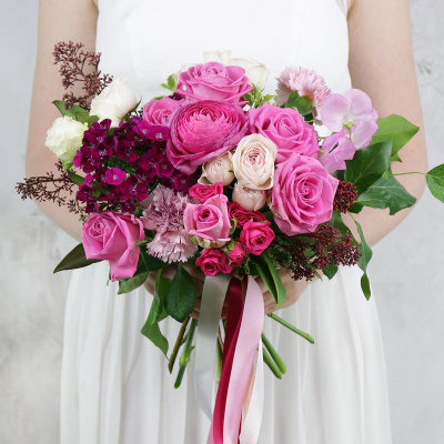 Букет невесты из роз, гвоздик и латируса| 6 400 Р | без скидки |