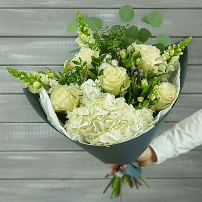Букет из гортензий, альстромерий и роз| 25 400 Р | без скидки |