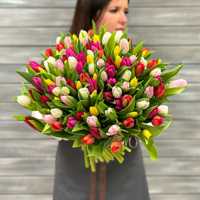 Букет из 101 разноцветного тюльпана| 20 400 Р | без скидки |