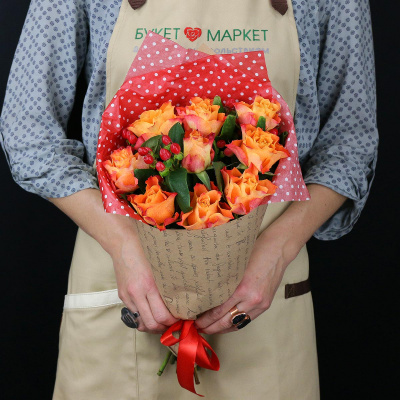 Букет с розами и гиперикумом| 2 300 Р | без скидки |