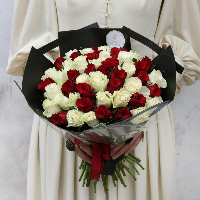 Букет из 51 розы - Красное и белое Кения 40 см.| 5 320 Р | без скидки |