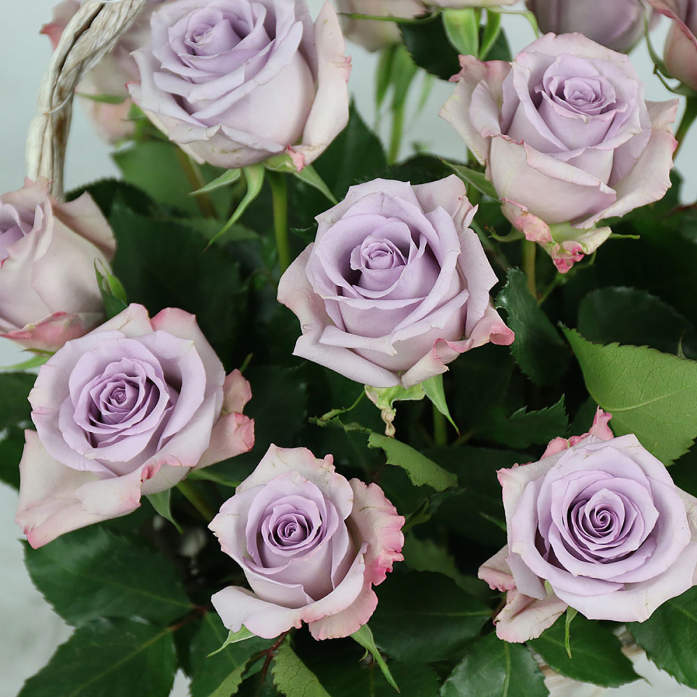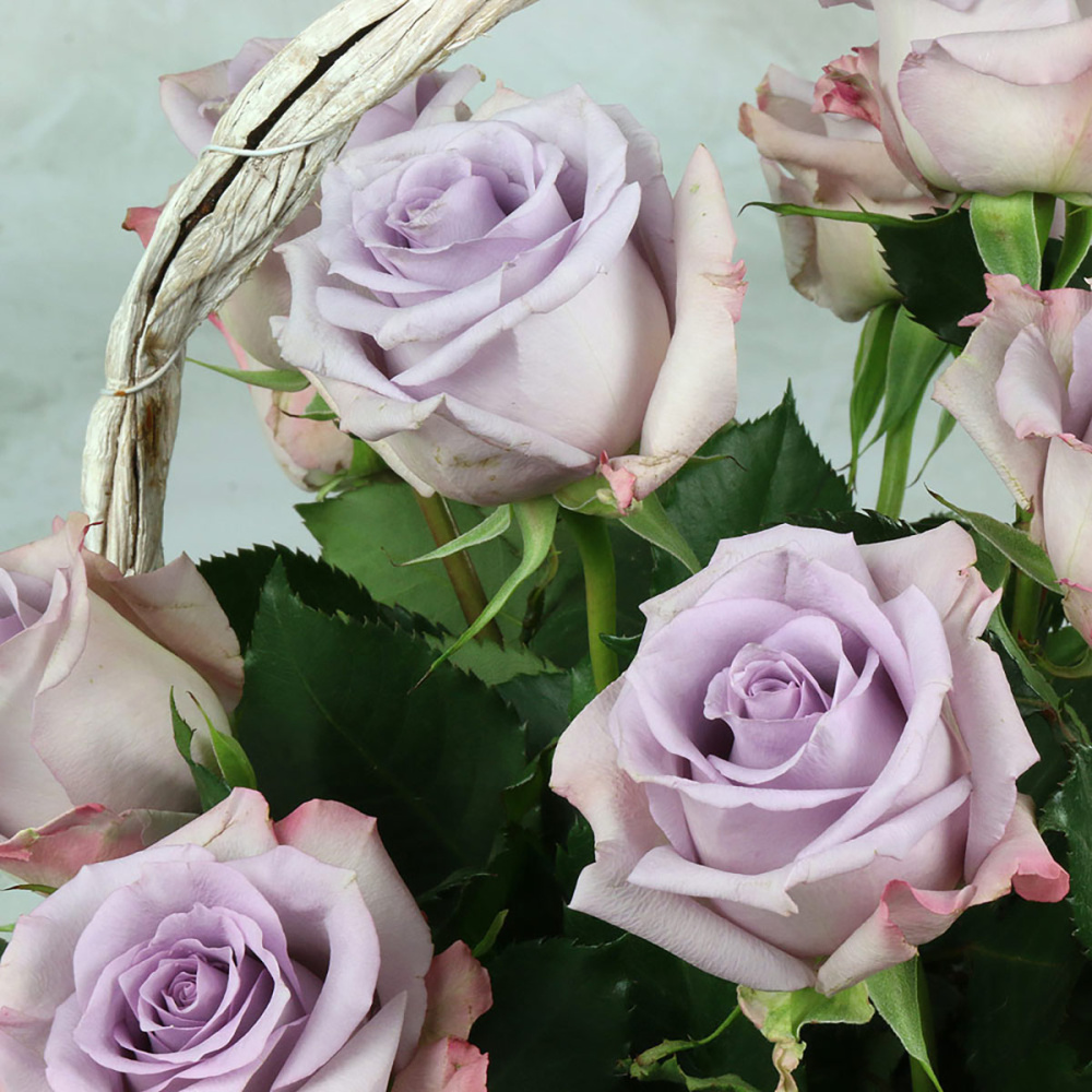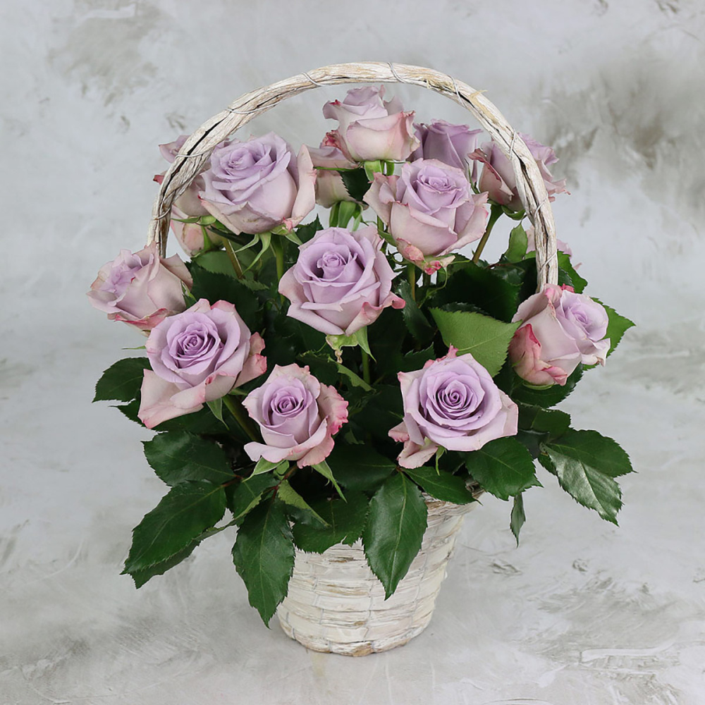 Состав: Корзина плетеная стандарт мал, Оазис кирпич, Роза Оушен сонг 40 см - 50 см