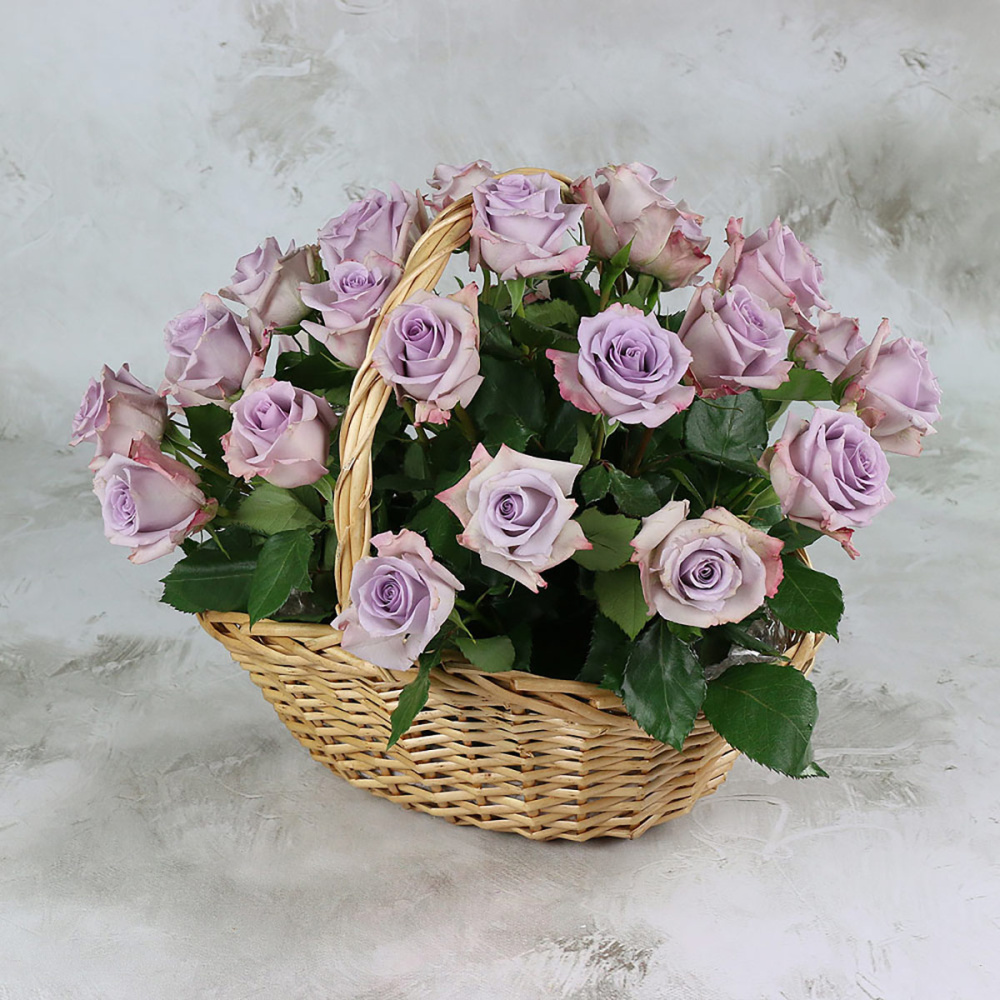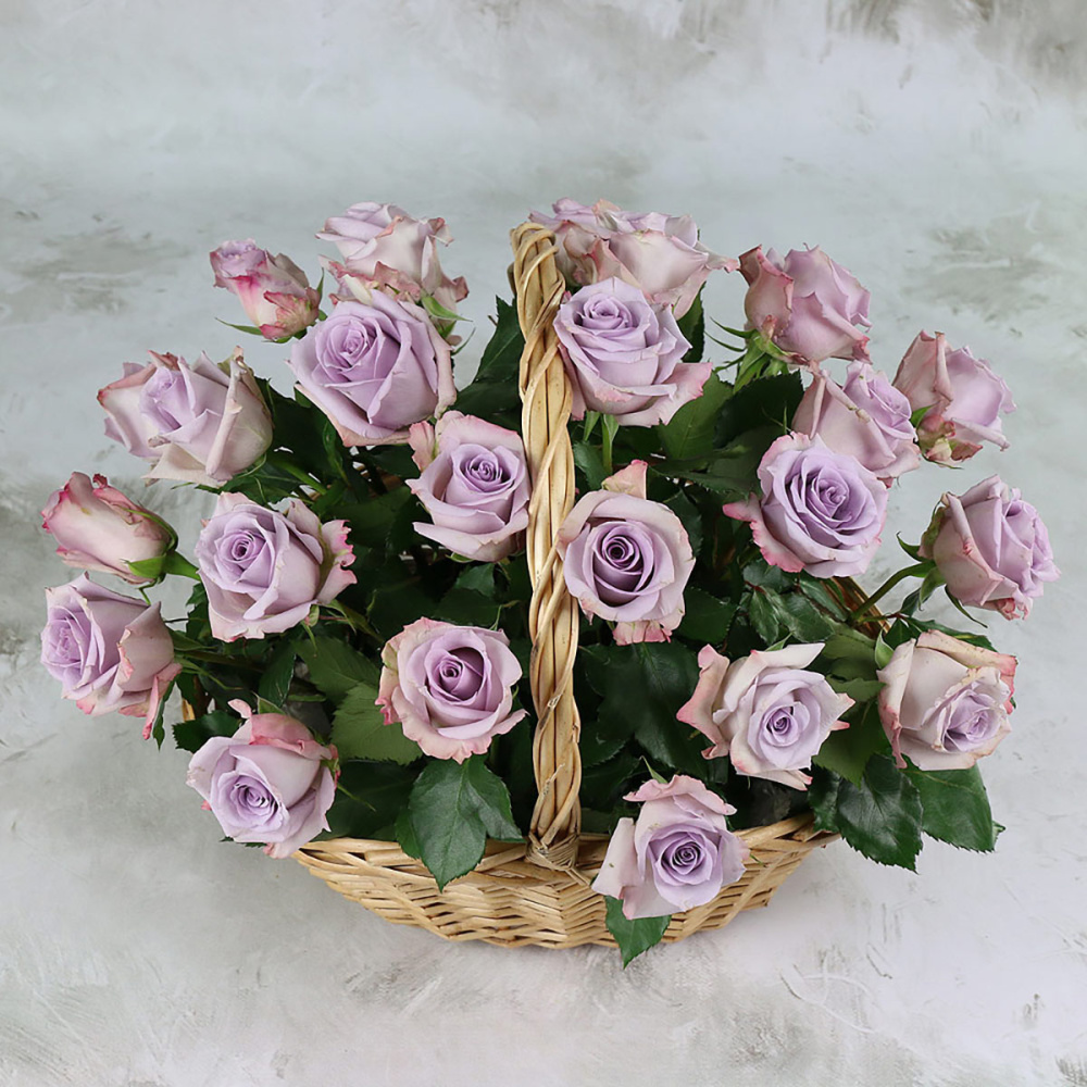 25 сиреневых роз в корзине, Кения