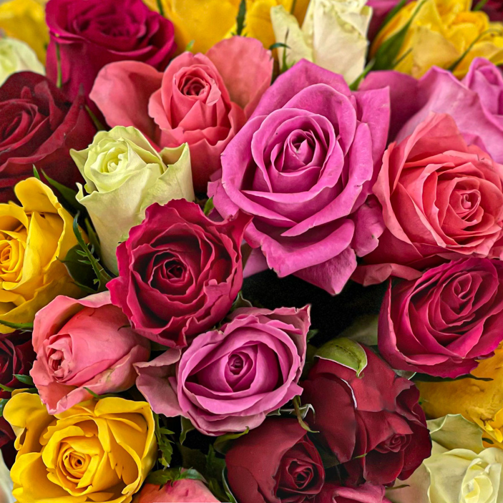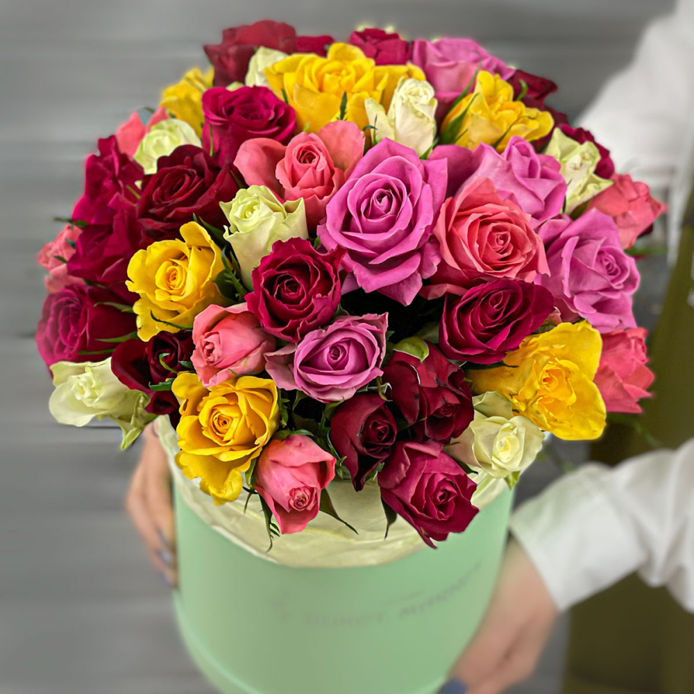 51 разноцветная роза в шляпной коробке, Кения