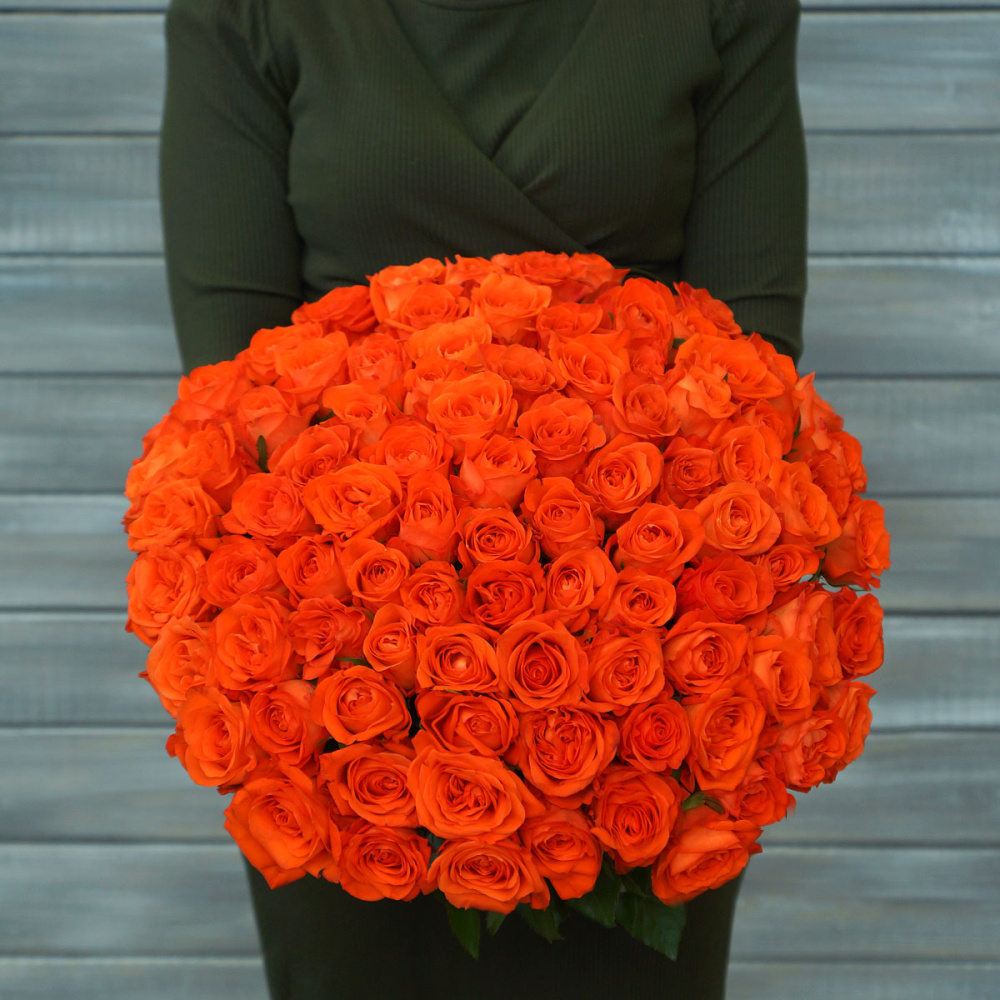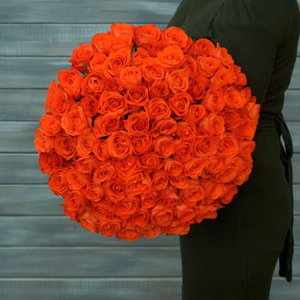 75 оранжевых роз с лентой Кения 40 см.