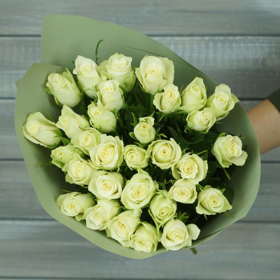 Букет из 21 розово-зеленых роз в упаковке Кения 40 см.| 4 500 Р | без скидки |