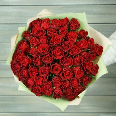 65 красных роз в крафте Кения 40 см.| 7 500 Р | без скидки |