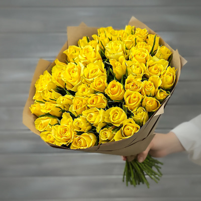 65 желтых роз в крафте Кения 40 см.| 7 600 Р | без скидки |