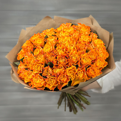 65 оранжевых роз в крафте Кения 40 см.| 7 400 Р | без скидки |