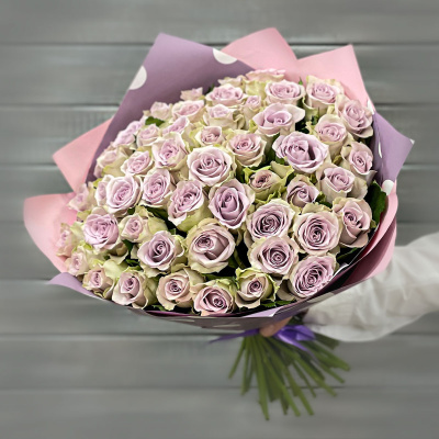 65 сиреневых роз в крафте Кения 40 см.| 8 300 Р | без скидки |