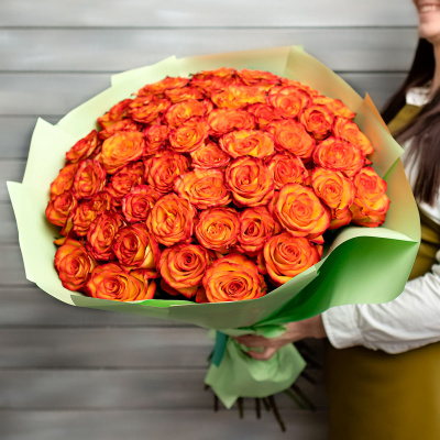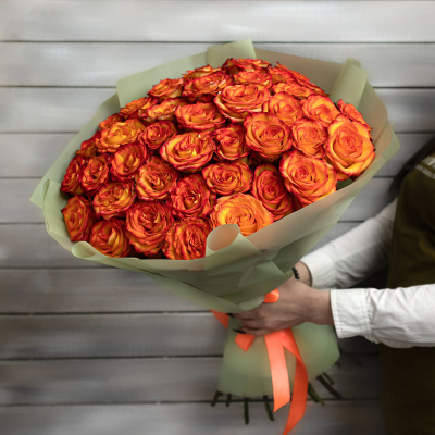 75 оранжевых роз Эквадор 50 см в упаковке| 19 500 Р | без скидки |