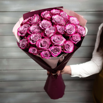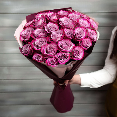 23 фиолетовые розы Эквадор 50 см в упаковке| 6 500 Р | без скидки |