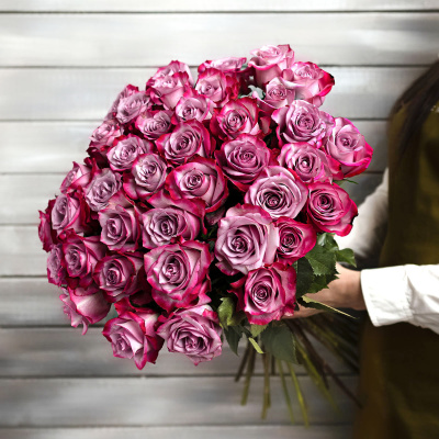 33 фиолетовые розы Эквадор 50 см| 8 900 Р | без скидки |