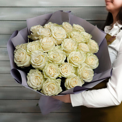 23 белые розы Эквадор 60 см в упаковке| 8 500 Р | без скидки |
