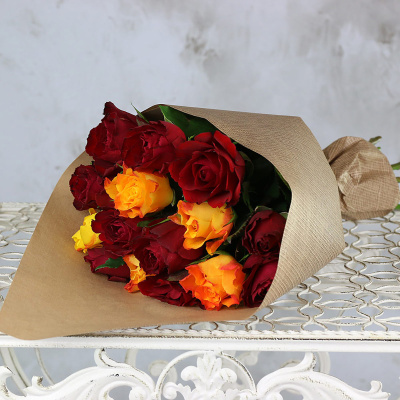 Букет из 15 красных и оранжевых роз в крафте Кения 40 см.| 2 200 Р | без скидки |
