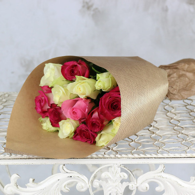 Букет из 15 белых и розовых роз в крафте Кения 40 см.| 2 100 Р | без скидки |