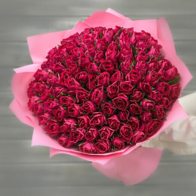 Букет из 101 малиновой розы в упаковке Кения 40 см.| 9 840 Р | без скидки |