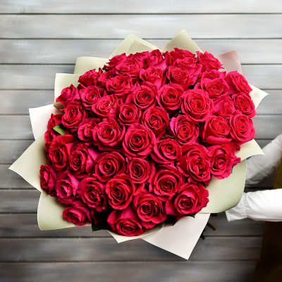 51 малиновая роза в упаковке Эквадор 60 см| 18 900 Р | без скидки |