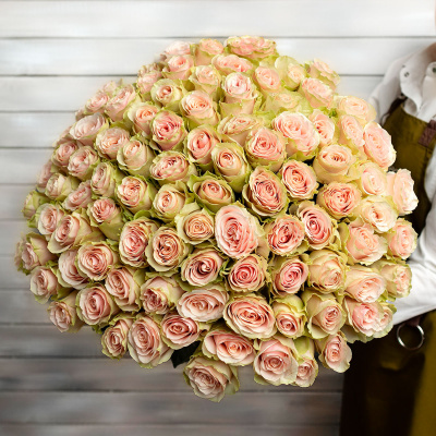 Букет из 13 зелено-розовых роз в упаковке Кения 40 см.| 1 900 Р | без скидки |