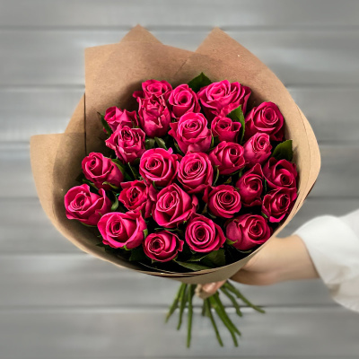 Букет из 21 малиновой розы в крафте Кения 40 см.| 3 420 Р | без скидки |