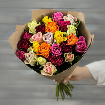 Букет из 21 разноцветной розы в крафте Кения 40 см.| 3 420 Р | без скидки |